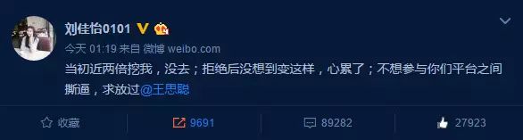在“王校长”发完微博后不久,阿怡也发了一条微博,称“不想参与你们平台之间撕逼,求放过"。(注:熊猫TV直播平台为王思聪创办)