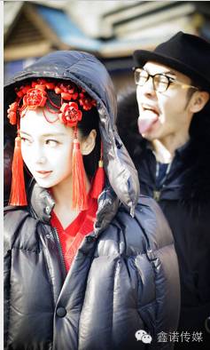 两人时而深情对视,时而做鬼脸搞怪,沉浸二人世界中,整个片场看来已经被教主“包下了”。
