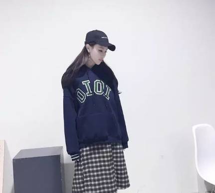 一件宽松BF风卫衣,搭配格子半裙,青春文艺气质范十足。这一身穿搭,即使你是微胖星人,或者上身较宽的MM,这绝对是你衣橱里必不可少的一件衣服。