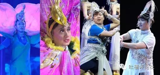 经过了一番等待,“华丽蜕变”的“渤兴”组合终于坐在一艘悬挂在空中的小船上缓缓登场,他们一边向下撒着玫瑰花,一边对观众眉目传情。下船后,两人来到了台中央,在群演们的带领下跳起了水蛇舞。