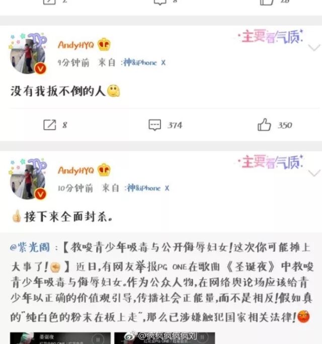 公开场合用脏话骂PGone,以获得吃瓜群众的拍手叫好。