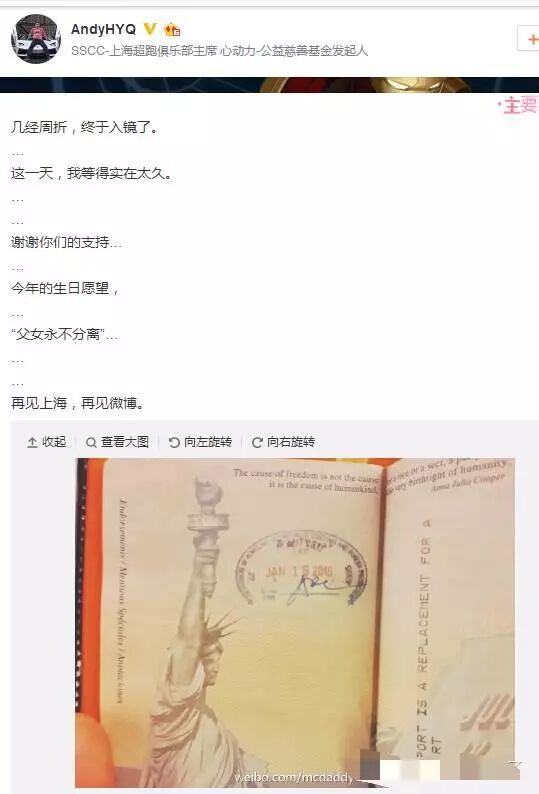 就这样,在2014年10月11日,两人终于正式离婚,黄毅清还发了一条微博表示为了孩子自己放弃了监视权。