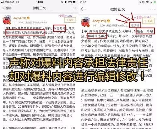 被张继科工作室打脸的声明后,把“被除名的乒乓球选手”改成了“乒乓球选手”,说好的硬gang说好的承担法律责任,还不是悄悄的变换了说法。