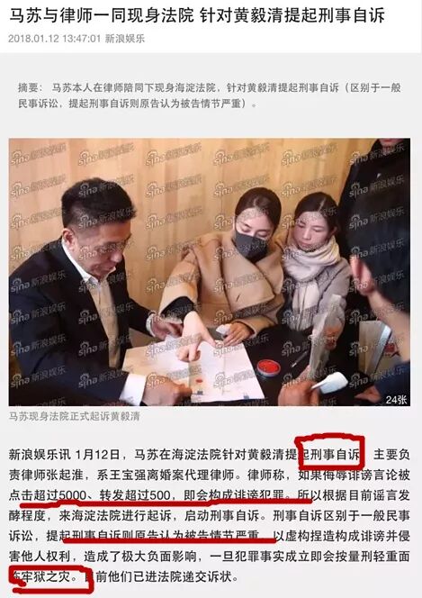 PGone夜宿事件日渐撤出热搜榜,黄毅清却死咬着马苏不放,每天都在抖马苏的“大料”。而沉寂多日的马苏今日终于发声,直接以刑事自诉形式起诉。