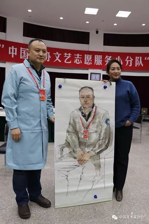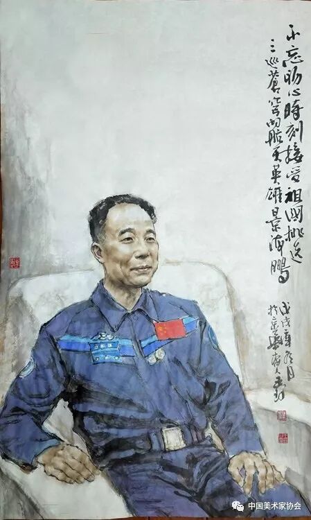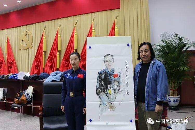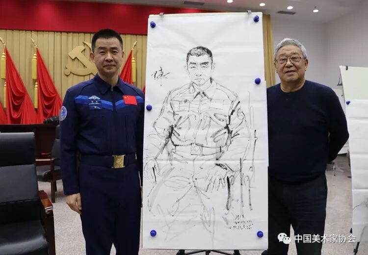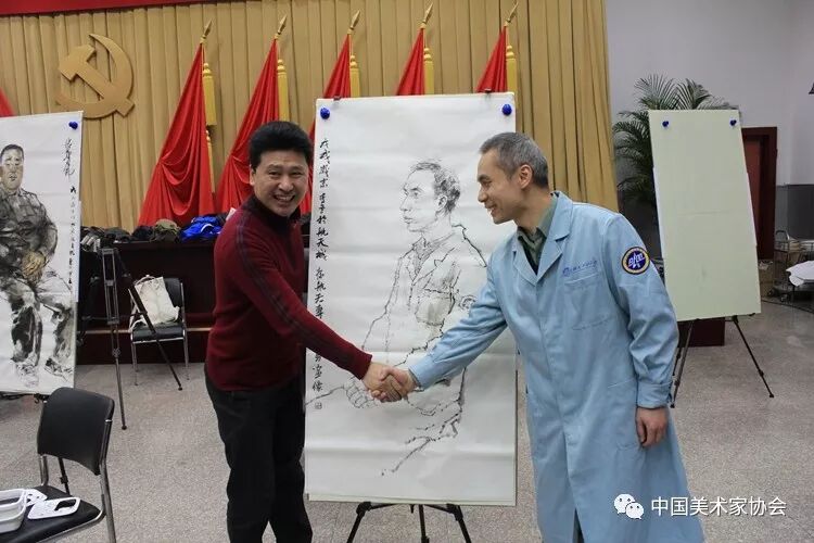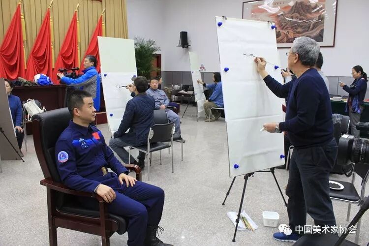 王珂根据照片为因公务晚到现场的航天员景海鹏画像