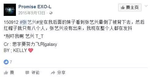 没过多久就看到微博上几个韩圈大V发布了小绵羊张艺兴又晕倒了的消息:即将和EXO成员们前往日本札幌三巡演唱会的张艺兴在韩国仁川机场候机时突然晕倒,失去意识的他随后被消防员送往医院