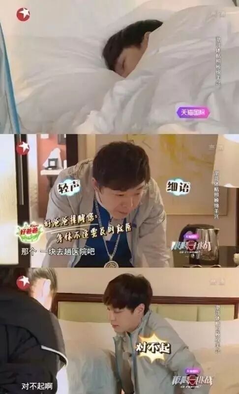 在医院接受了治疗的张艺兴看起来仍然很虚弱,但认真敬业的他坚持要带病完成录制工作,并一直跟工作人员道歉说“对不起”,认为是自己生病而影响耽误了节目组工作人员的工作