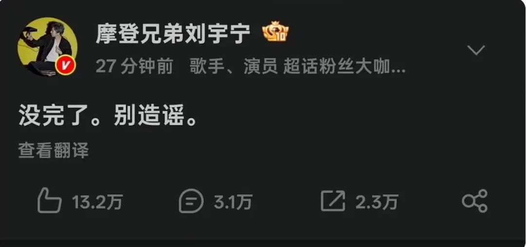 面对持续发酵的谣言,他没有选择冷处理,也没有让团队发那种文绉绉的律师函,而是直接用自己的大号,甩出了那六个字:“没完了。别造谣。”