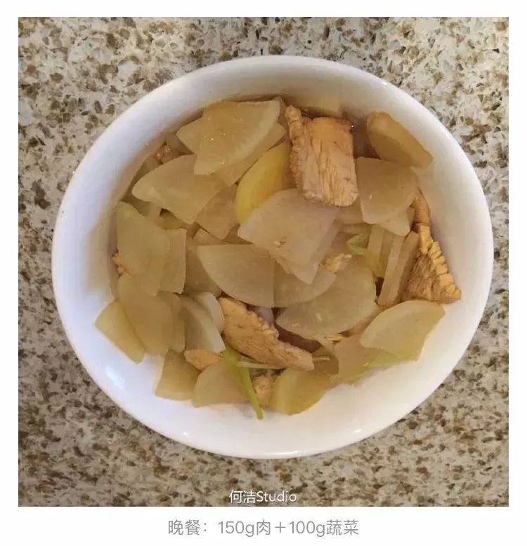 还会记录每天的食谱,大多都是水煮的食物,没有油,同时水果少不了。看到这样的食谱还是不得不佩服,三个月坚持下来,也是不容易的。