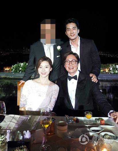 7月28日凌晨,宋承宪在微博晒出一张与一对新人的合影,并送上祝福。