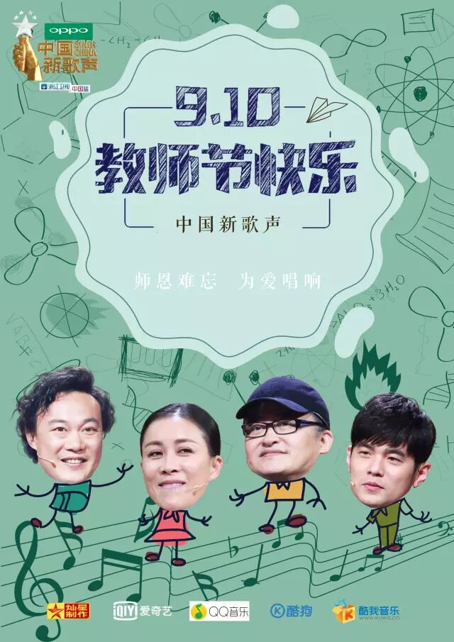 今天是教师节,在此也要祝新歌声的四位最最可爱的音乐导师节日快乐!代表学员、观众和幕后工作人员道上一声:您辛苦啦~~!