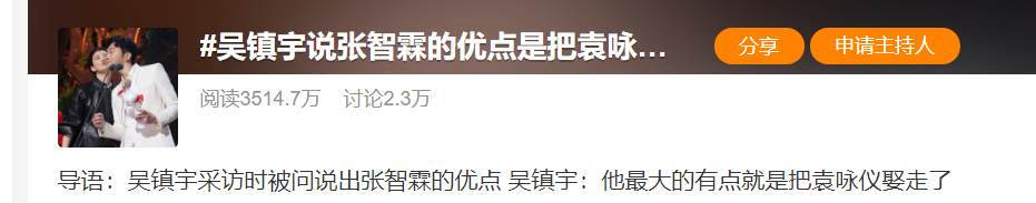今天,果不其然微博也有吴镇宇调侃张智霖袁咏仪的营销。