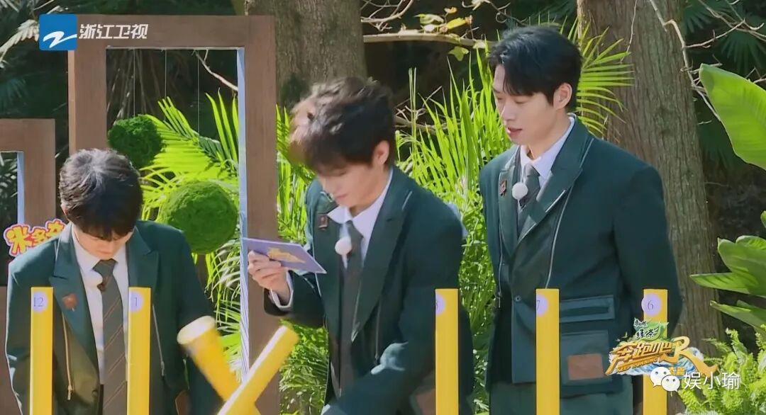 当李晨和郑恺两位老成员都淘汰之后,张真源拿台本念游戏规则。