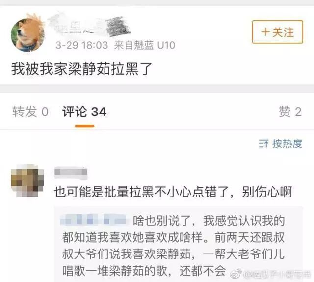 结果一众网友留言,狂讲范玮琪坏话,表示范玮琪心机很重,让梁静茹远离她。最后梁静茹立刻删除微博,并拉黑了所有在下面说三道四的人,包括粉丝。也是很有勇气了~