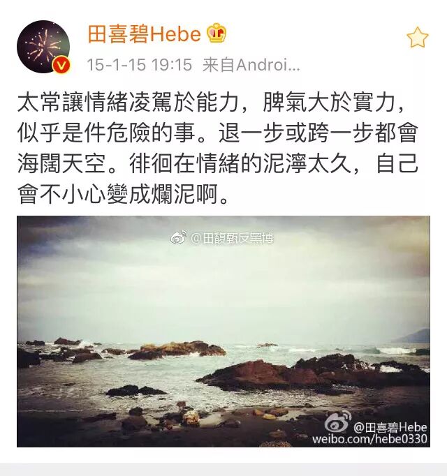 田馥甄反黑博就此发出声明,双方僵持不下,谁都觉得是对方开始的骂战,所以,既然开战,火力全开,也没在怕的。