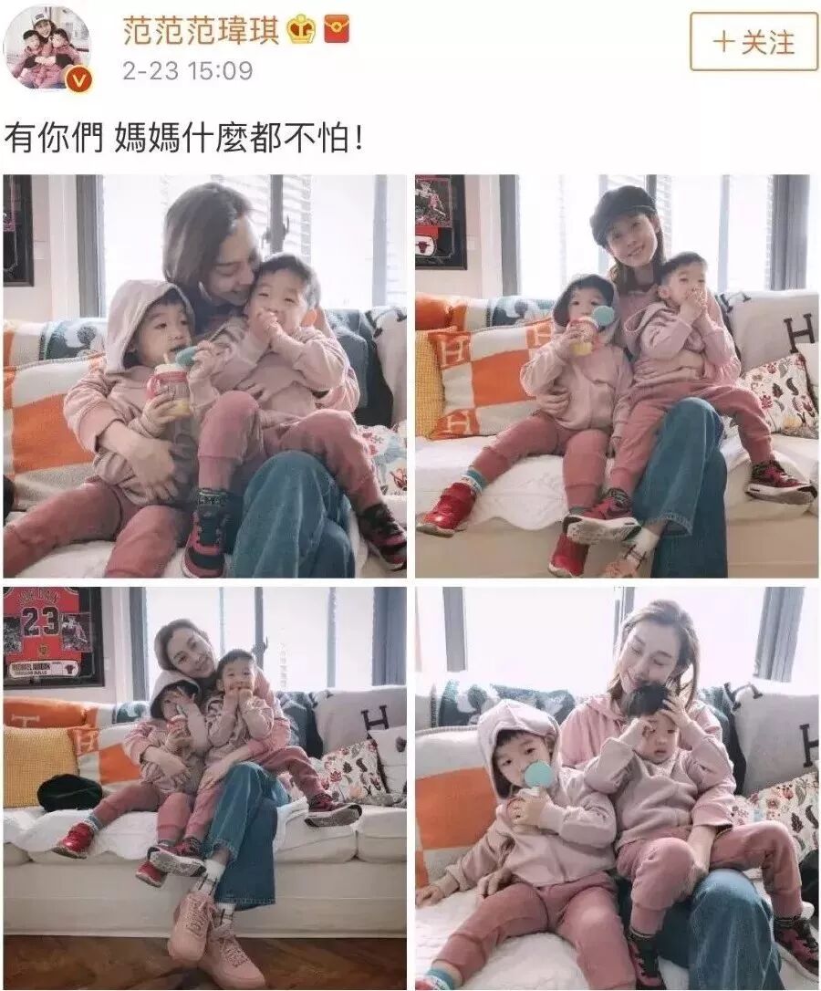 面对激动的网友们,范玮琪发了一组抱着孩子的照片,回应喷子们自己不怕。
