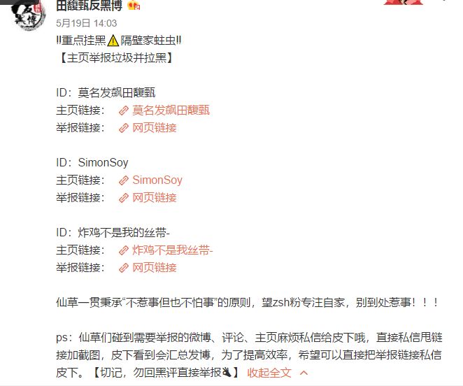 而田馥甄反黑博发现疑似张韶涵的粉丝对田馥甄这番行径进行辱骂,晒出疑似张韶涵粉丝的证据截图,并举报。