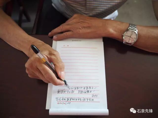 除了按时参加集体学习,陈应鹏在家中经常进行自学。他家客厅的一角的简易方桌上,整齐地摆放着党建报刊、两学一做”学习教育读本、习近平系列讲话读本,最上方是他的“两学一做”学习笔记本,笔记本里清晰整齐地记录着日期、学习题目、重要内容等,毕竟岁月不饶人,陈应鹏的视力远比不上往年,他的每一页笔记里都能看到他的认真和努力。