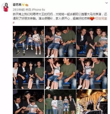 霍思燕发博,昨天嗯哼大王与奶奶,太姥姥要求求看了马戏表演,很开心。