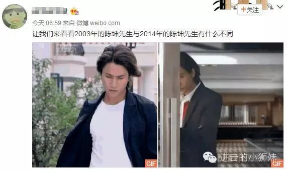 哎,时间对长得好看的人还真是温柔啊!陈坤可以说是国内可以吹颜的男星之一,真好看,好看了那么多年。话说这两张图小狮妹后来去扒了一下,第一张是他在2003年拍摄电视剧《双响炮》的一个镜头,第二张是他在2014年拍摄的欧珀莱化妆品广告。