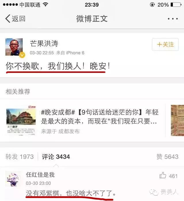 除了处女梗呢,另外一个就是广为人知的耍大牌咯~对于邓紫棋耍大牌的事儿,多到简直可以绕地球好几圈儿,就拿最近的来说,就是《我是歌手双年巅峰会》前夕,被总导演洪涛发微博点名↓