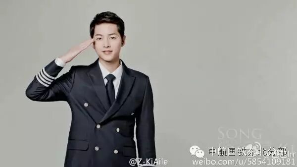 图:近日,韩国男演员宋仲基成为韩国某航空公司代言人,脱下军装的“柳大尉”再次穿上机长制服,更添几分帅气。