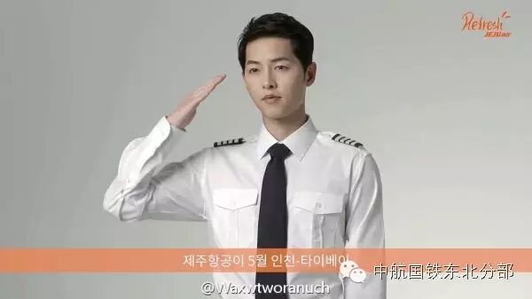 5月2日,济州航空公开了一组宋仲基的代言照,脱下军装的他换上机长制服,带你周游世界带你飞!