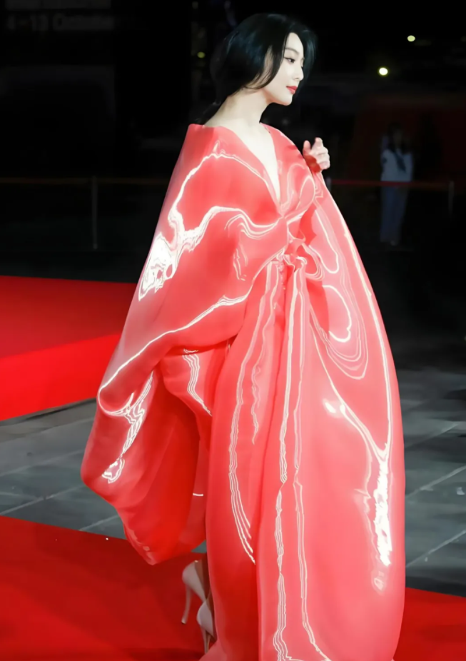 瞧这现场,闪光灯都要炸了!摄影师们抢着按快门,生怕错过任何一个精彩瞬间。别看这裙子像火锅店门口的招牌,范爷这一穿,立马变成了顶级时装秀!这谁顶得住啊!