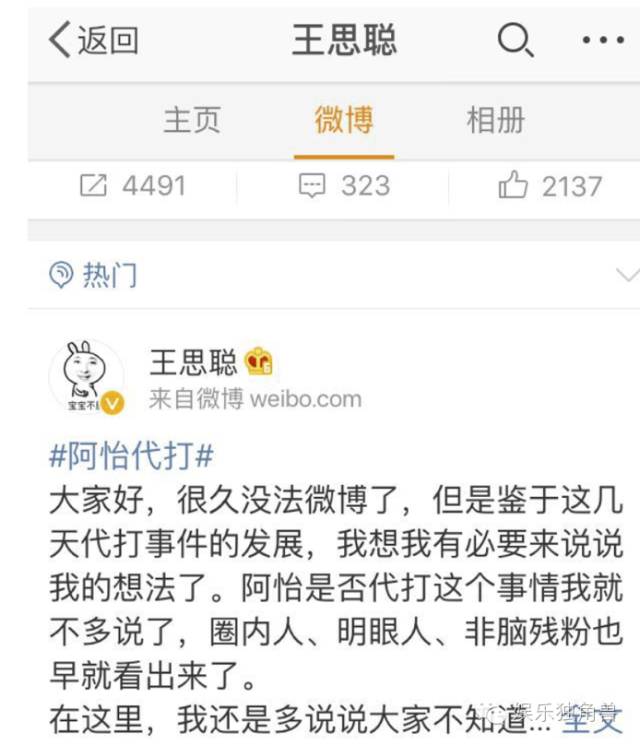 6月8日晚间,国民老公王思聪发布了一条微博,揭露游戏女主播阿怡欺骗粉丝,拿着千万年薪却找人代打。同时指责阿怡的签约直播平台斗鱼tv,对这种代打行为姑息养奸。