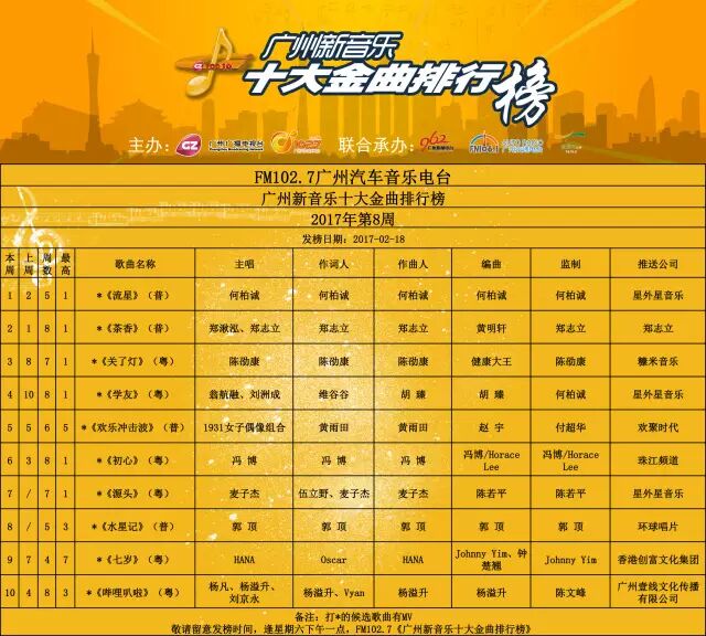 广州新音乐十大金曲排行榜