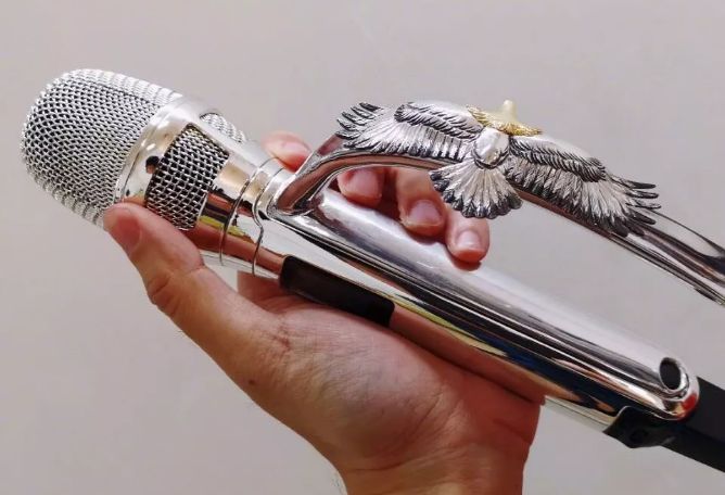最近,他的2018“圣所”演唱会上,他定制了一只有着展翅之鹰的特别麦克风,喻示着“如鹰展翅上腾”。