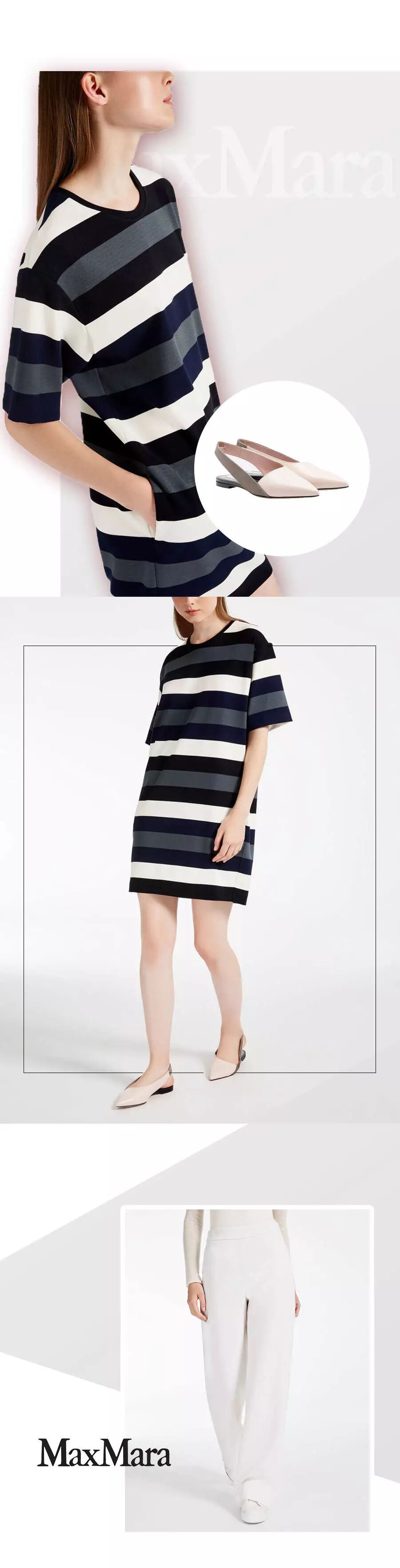 one-piece的三色条纹宽松连衣裙只要配上一抹红唇和一双得体的鞋履就能轻松上街。作为上衣来穿也未尝不可,选择黑色的阔腿裤,别忘了戴上一根极具法式浪漫的项链,通勤或是逛街都很适宜,优雅品味源自细节。