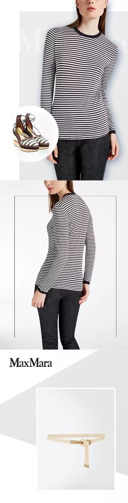 条纹衫是法式风格的入门级单品,每个女孩的衣柜里都少不了一件条纹打底衫,在你不知道穿什么的时候,它总是那个能带给你新灵感的选择。