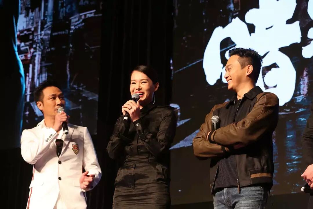 3月20日,三料视后胡杏儿与古天乐、张智霖、吴镇宇携新片《死亡通知单:暗黑者》亮相香港国际影视展,这一天王视后的组合堪比黄金阵容。