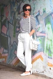 如果说穿好一件条纹上衣对你来说早已不在话下,还可以尝试传说中同时考验身材和穿着功力的条纹下装。