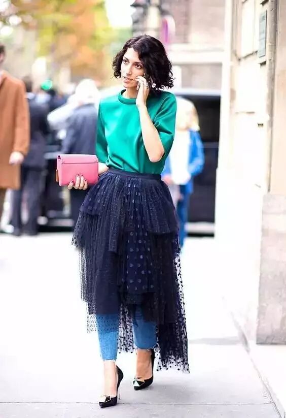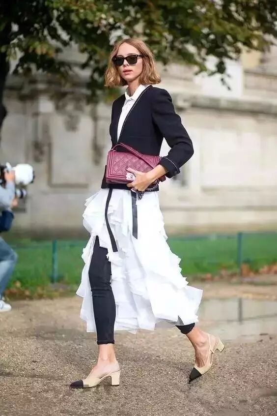 蓬蓬的纱裙单穿总觉得很幼稚?混搭裤子瞬间就高级了。纱裙+紧身裤不仅能减少膨胀感,还能起到一定的显瘦效果。搭配高跟鞋美美的,走起路来一点都不嫌累赘。