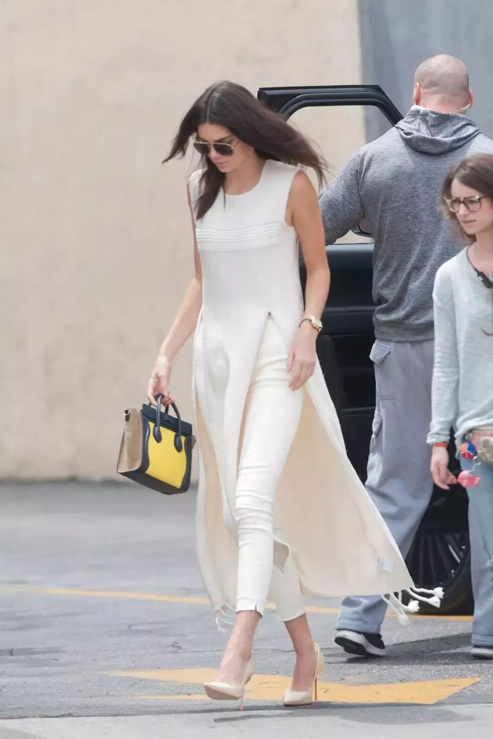 街拍时尚偶像、当红模特肯达尔-詹娜则选择了裙子+裤子叠穿来打造同色系搭配,简约利落却又时髦至极。