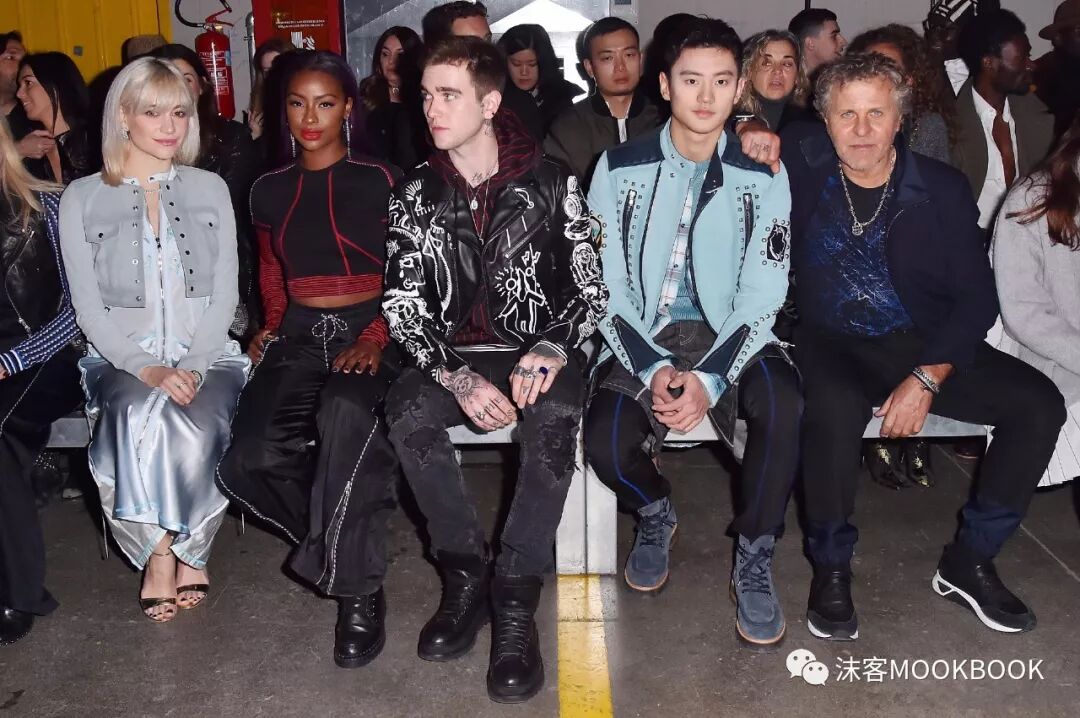歌手Pixie Lott、Justine Skye、Gabriel-Kane Day-Lewis与宁泽涛、Diesel创始人兼总裁Renzo Rosso坐在头排显著位子。