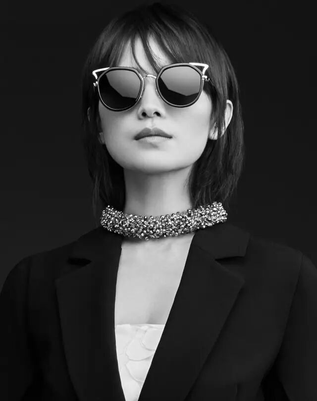 短发配上猫眼墨镜把霸道总裁体现的淋漓尽致,攻气十足,相信妹子们都愿意对她说出一句:恩,我愿意!其实用墨镜撩妹的何止小宋佳一人,咱们其实也可以做到,你也只需一副攻气十足的墨镜↓