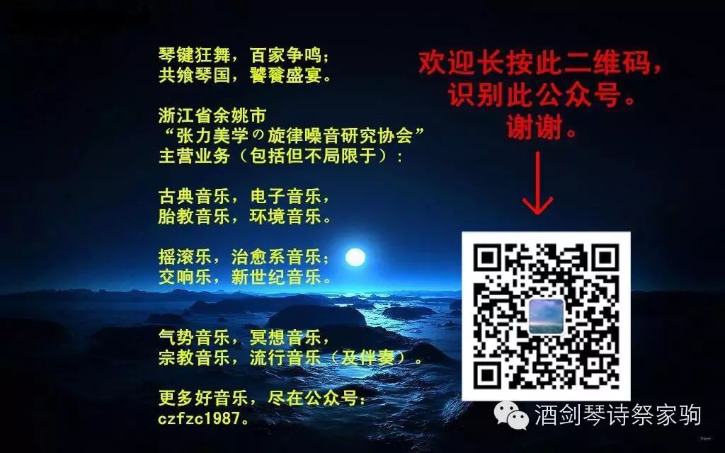 琴键狂舞,百家争鸣;共飨琴国,饕餮盛宴。 浙江省余姚市张力美学の旋律噪音研究协会主营业务(包括但不局限于): 古典音乐,电子音乐,胎教音乐,环境音乐。 新世纪音乐,摇滚乐,治愈系音乐,交响乐。 冥想音乐,宗教音乐,气势音乐,流行音乐及伴奏