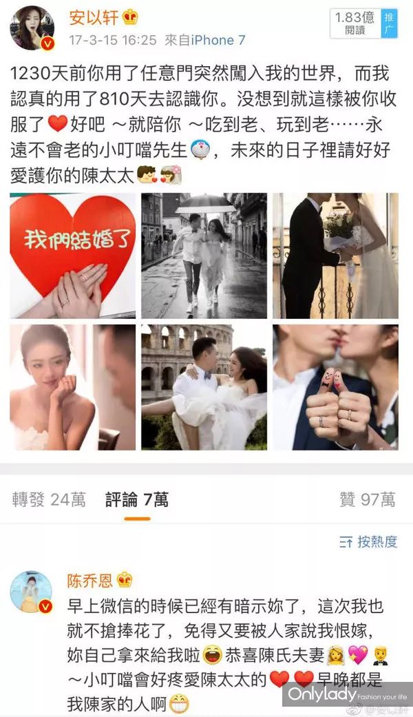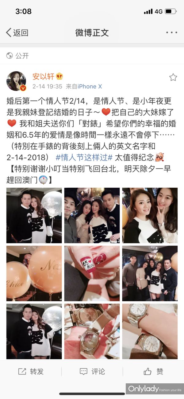婚后的安以轩果然是更加光彩照人,在婚后第一个情人节以及第一个结婚纪念日都大方发微博晒幸福,这对恩爱甜蜜对夫妻还因此上了不少热搜。