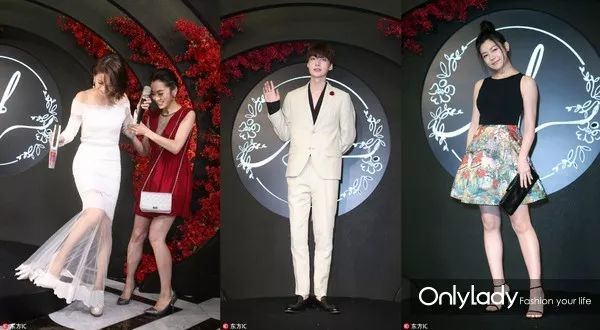 而安以轩这一身一字肩的连衣裙搭配浪漫的大波浪卷则是优雅大方,一双酒红色尖头高跟更是尽显女人魅力。