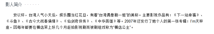安以轩从出道成名起就被称为偶像剧第一人,每年她都有大把时间泡在横店拍戏,更是被戏称为”横店公主“。