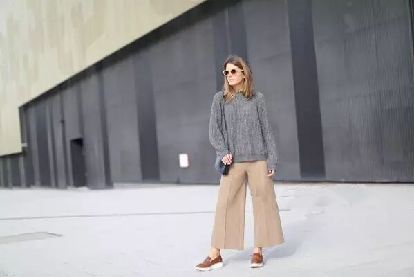 裸色系阔腿裤就透着一股浓浓的“性冷淡风”
