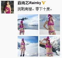 早前,Rainky冒险在零下十几度的冰天雪地着比坚尼尽晒32D魔鬼胸,成为首位在南极着比坚尼的香港艺人,认真威水!