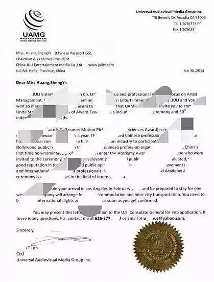 似乎是为了证明黄圣依去奥斯卡是有受邀请的
