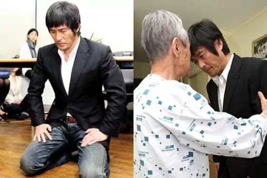 (2008年,当街殴打老人,惊动警方,后开道歉记者会下跪认错。)
