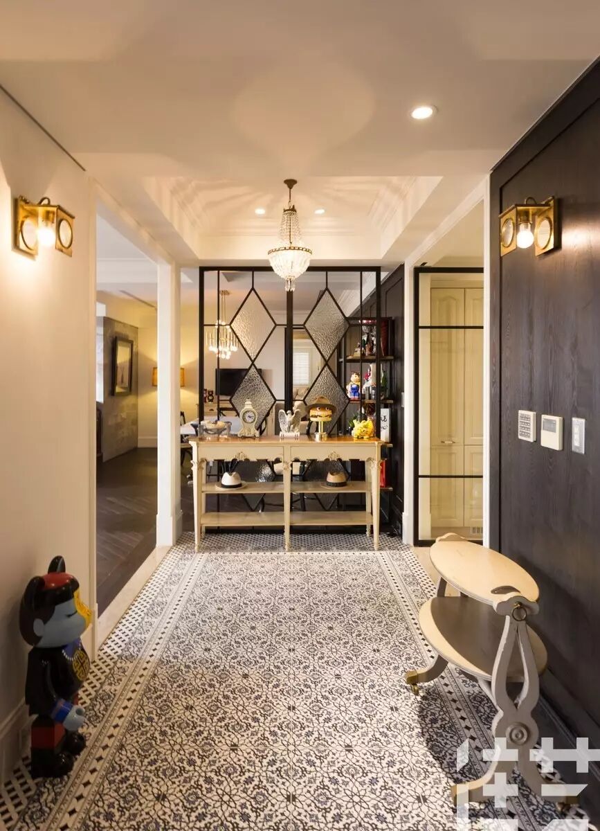 几何图案的壁纸、混搭的家具、开敞的格局、大量艺术品搭配……