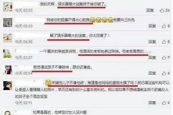 也有些网友并不相信陈坤的说法,按照他儿子的年龄,那时候还没有能达到代孕的手段,但是可能只是找了一个素人,亲身代孕吧。