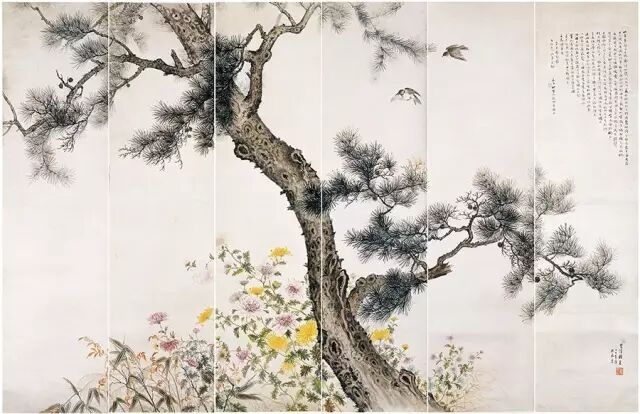 何香凝《松·菊》,设色纸本,173×273cm,1931年